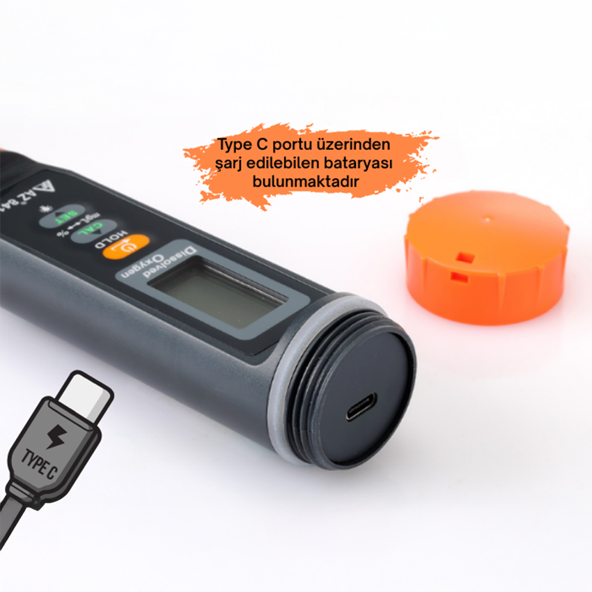 AZ 8413 çözünmüş oksijen ölçüm probu, su içerisindeki oksijen seviyesini hem mg/L hem de % birimlerinde hassas şekilde ölçmek için tasarlanmış taşınabilir ve yüksek performanslı bir cihazdır.