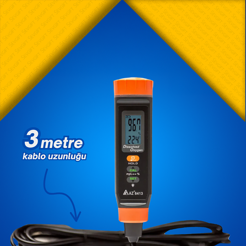 - AZ 8413 çözünmüş oksijen kalemi, su içerisindeki oksijen miktarını hem mg/L hem de yüzde (%) birimlerinde ölçebilme özelliği sayesinde, hem balık çiftliklerinde hem de çevresel su analizlerinde oldukça geniş bir kullanım alanı sunar.