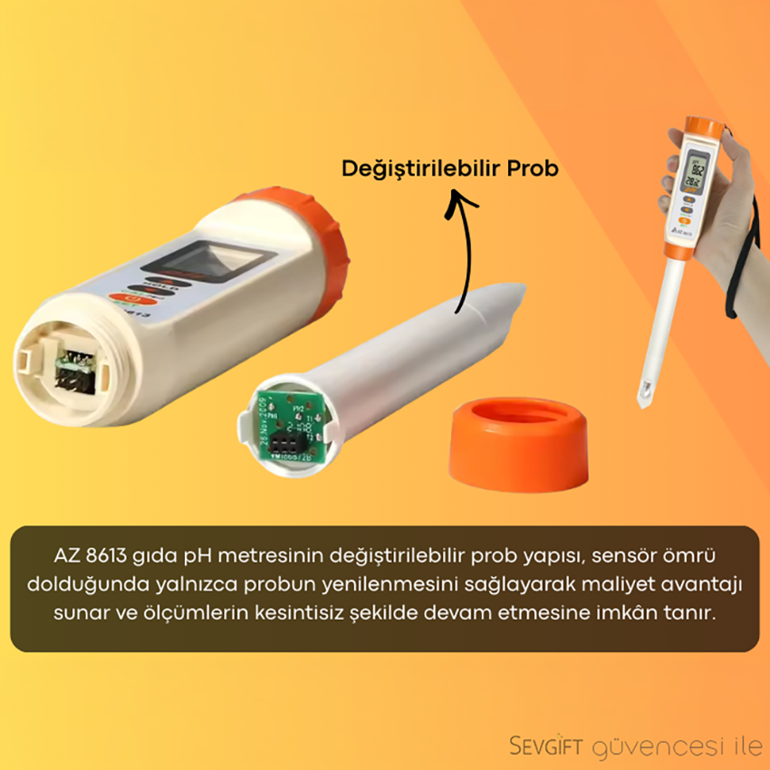 AZ 8613 pH metrenin probu, doğru ve güvenilir ölçüm sonuçları elde edebilmek için numune