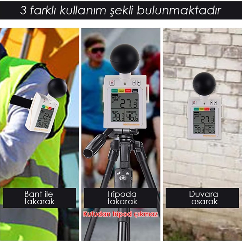 - AZ 87783 wbgt ölçüm cihazı ile yanında gelen band ile kola takılarak kullanılır.