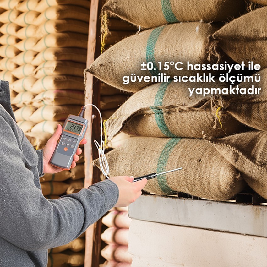 - Cihaz hassasiyet olarak ±0,15°C ve çözünürlük olarak da 0,01°değerlerine sahiptir.