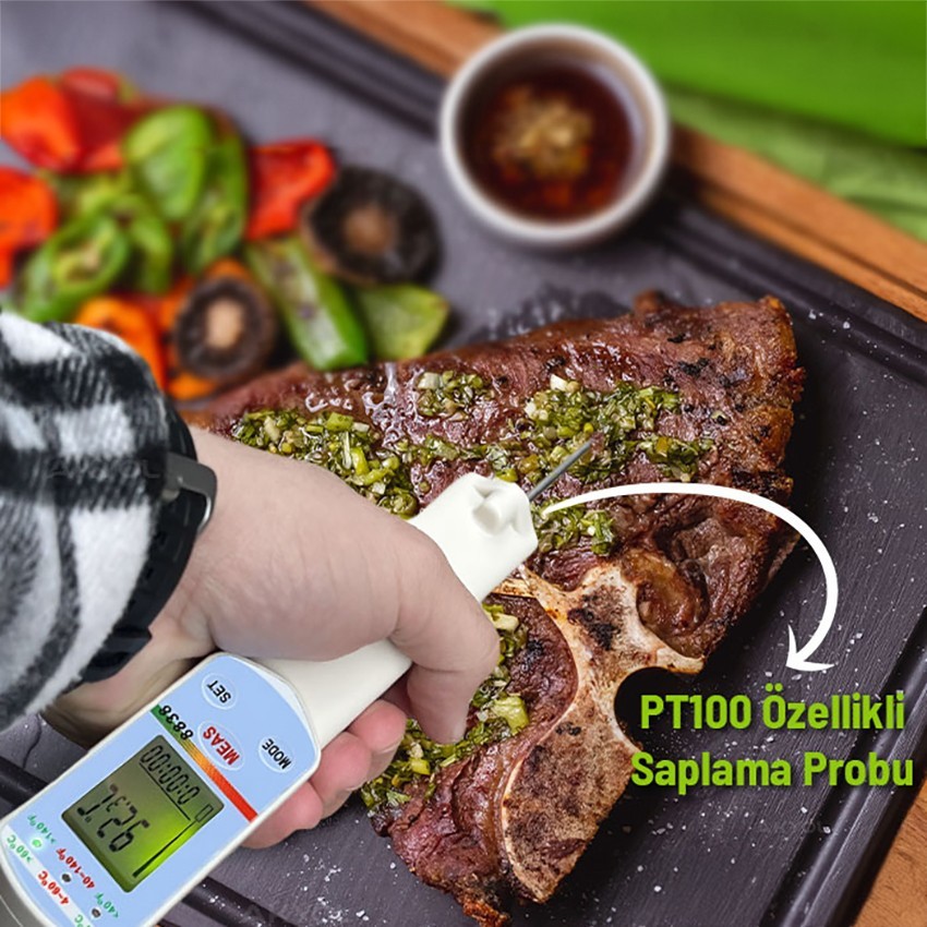 - Bu dijital ölçüm cihazı daha çok yarı katı ve sıvılar için uygundur. Katı, sert, ve donmuş ürünler gibi malzemelerde kullanıma uygun değildir.