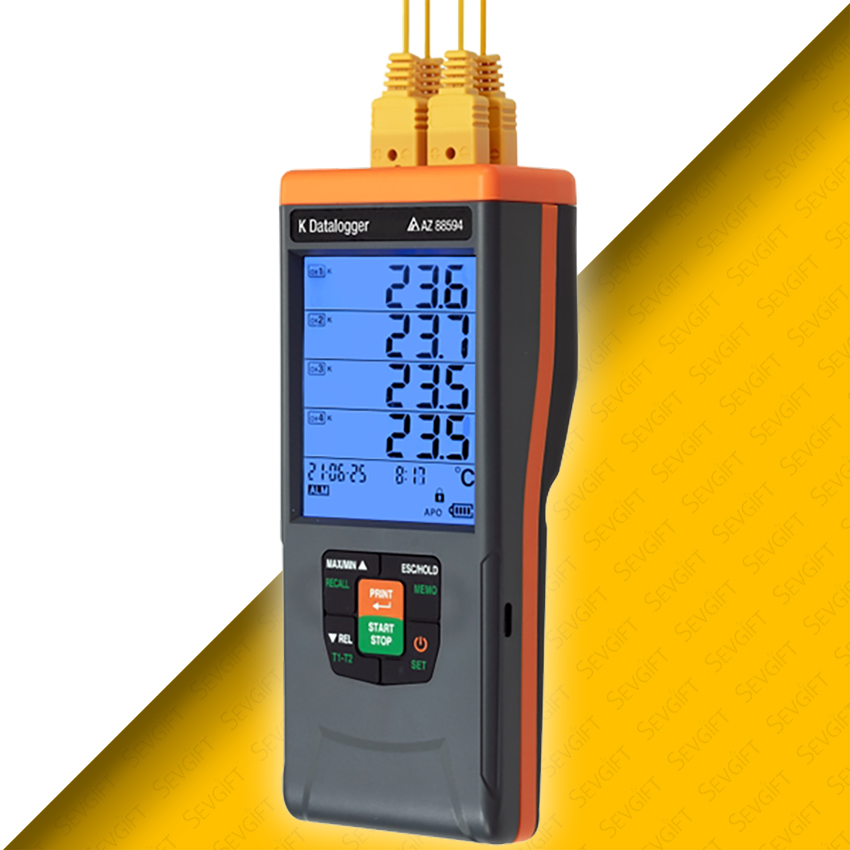 - AZ 88594 GLP 4 kanallı K tipi termokupl veri kaydedici, laboratuvar ve endüstriyel uygulamalarda güvenilir ölçüm ve kayıt imkânı sunmak üzere geliştirilmiştir.