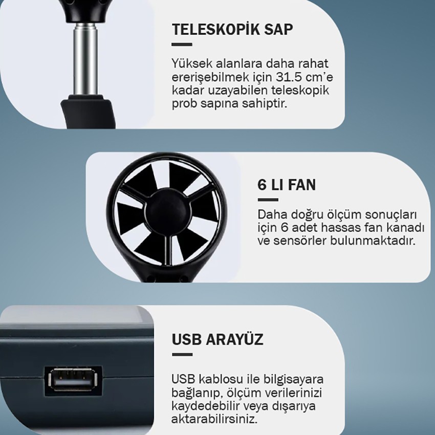 Taşınabilir ve problu anemometre modelleri saha kullanımında pratiklik sağlarken, profesyonel cihazlar daha hassas ve detaylı ölçüm imkânı sunar. Sevgift güvencesiyle sunulan anemometre modelleri ile hava akış ölçümlerinizi hızlı ve doğru şekilde gerçekleştirebilirsiniz.