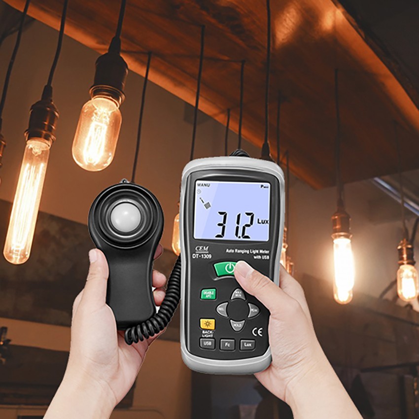 Cem DT 1309 Işık Ölçer Lüksmetre; LUX ve FC birimleri arasında geçiş yaparak ortamdaki ışık şiddeti ölçümü yapabilmenize olanak sağlayan, dijital ışık ölçer luxmetre çeşididir.