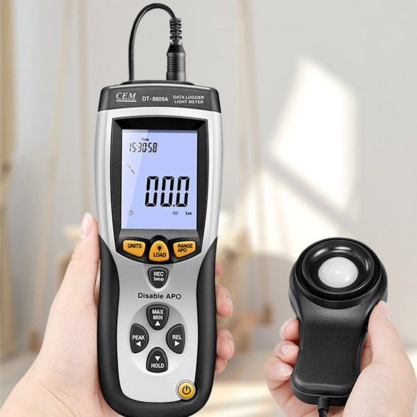 Cem DT8809A ışık şiddeti ölçer ve kayıt datalogger cihazı; ortamdaki ışık seviyesini takip edebilmek amacıyla, ışık şiddetini LUX veya FC birimlerinde kayıt edebilen ışık kayıt cihazıdır.