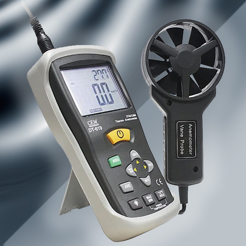 Cem DT-8880 dijital anemometre cihazı; havanın hızını, sıcaklığını ve debisinin ölçümleri için kullanılan teleskobik yani uzayan bir proba sahip, hassas bir anemometredir.