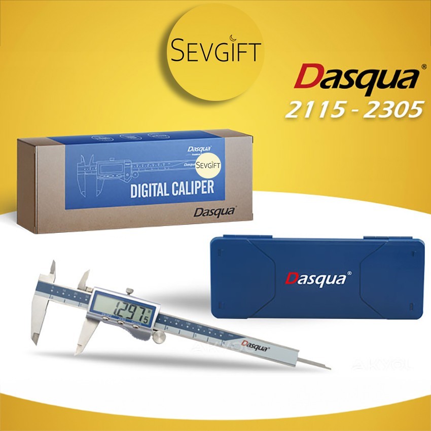 Dasqua 2115-2305 elektronik kumpas; 150 mm yani 15 cm uzunluğunda ve 0.01 mm hassasiyet ile kalınlık ölçümü yapabilen, diğer kumpaslardan farklı olarak göstergenin olduğu bölümde metal bir kasaya sahip olan kalınlık ölçüm cihazıdır.