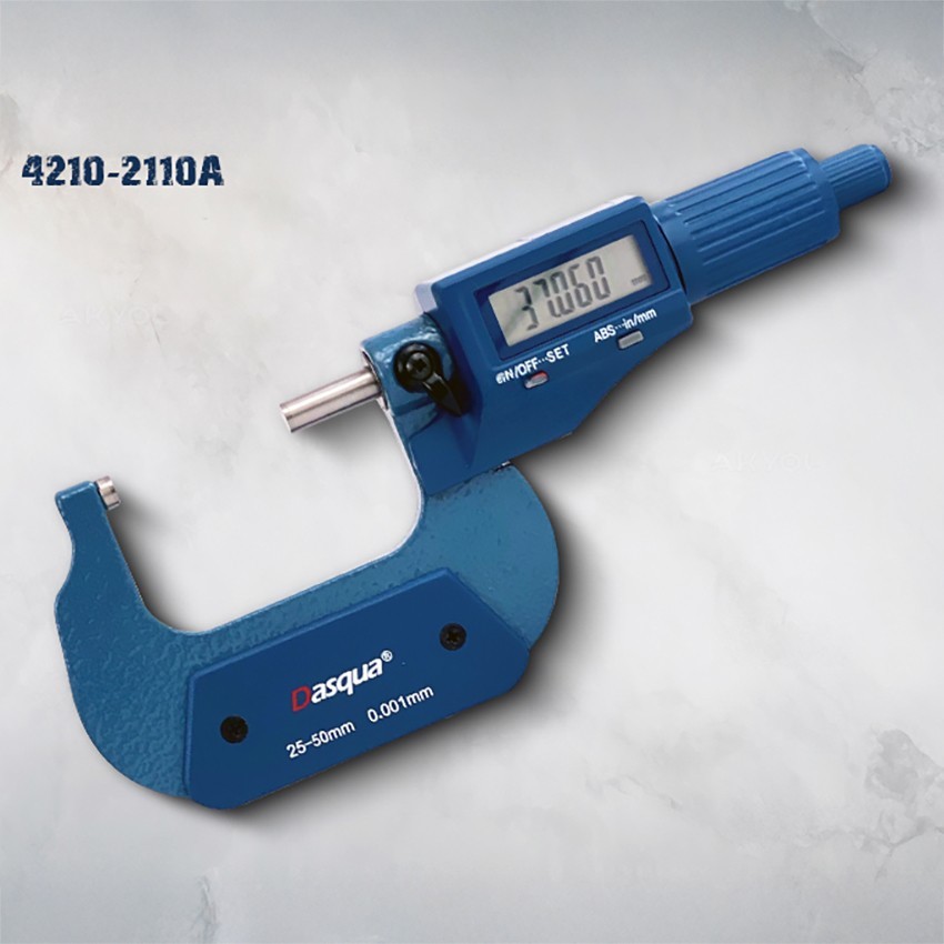 - Dasqua 4210-2110A dijital mikrometre; hem inç hemde mm ile ölçüm yapabilmektedir.
