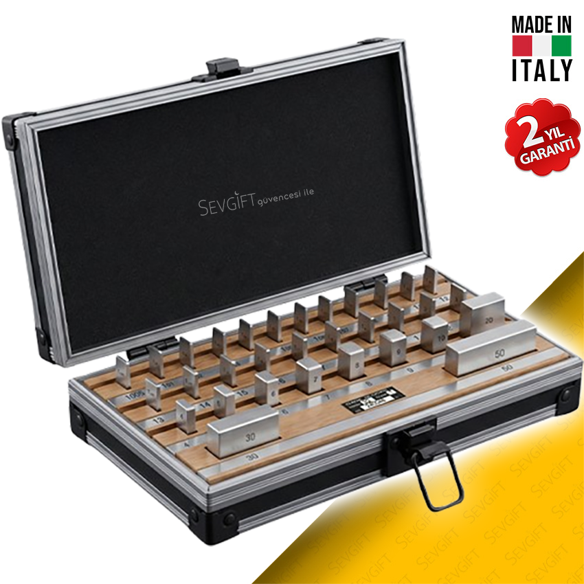 referans kontrol işlemleri için kullanılan, yüksek hassasiyetli ve standardize ölçülerde üretilmiş kalite 1 özelliğine sahip profesyonel bir mastar blok setidir.