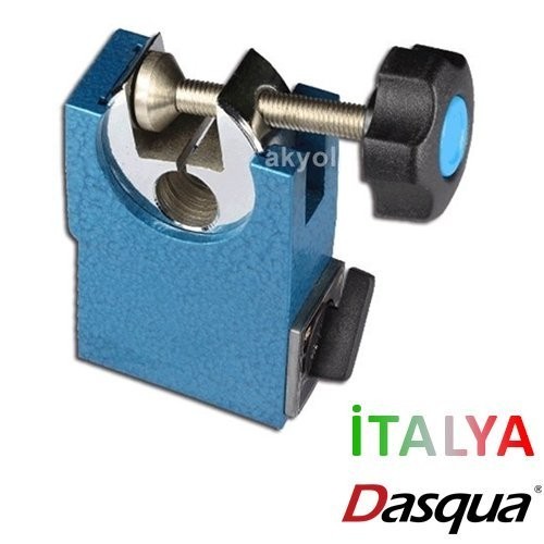 Yukarıda görmüş olduğunuz görselde, Dasqau 7111 mikrometre standına mikrometrenin nasıl sabitleneceği görülmektedir.
