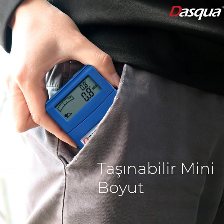 Dasqua 8400-0000 açılır ekranlı dijital eğim ölçer cihazı ergonomik boyutları ile kolay taşınabilir, alt kısmında bulunan mıknatıs ile metal yüzeylere sabitlenebilir mini eğim ölçer cihazıdır.