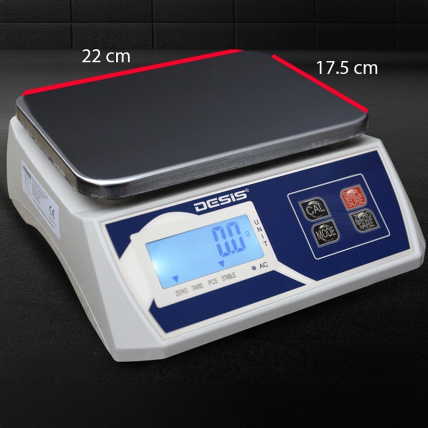 Desis H7W-30 dijital terazi; 30 kilogram tartım kapasitesine ve 1 gram hassasiyete sahip, arka aydınlatma ışığı ile karanlık ortamlarda ölçüm olanağı sağlayan kullanımı basit olan bir tartım cihazıdır.
