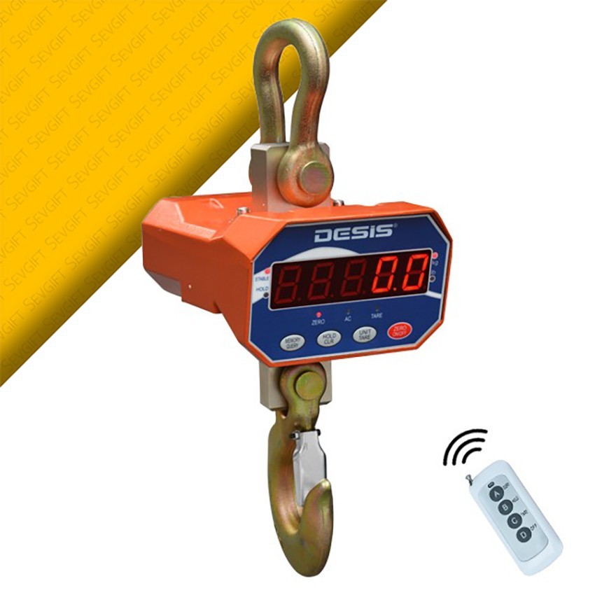 Desis OCS-A vinç baskülü maksimum 5 ton' a kadar tartım yapabilen ve 2 kilogram hassasiyetli uzaktan kumandaya sahip bir tartım cihazıdır.