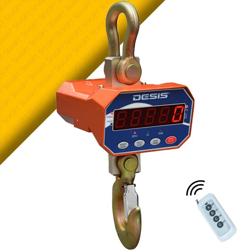 Desis OCS-A vinç baskülü maksimum 1 tona kadar tartım yapabilen ve 500 gram hassasiyetli uzaktan kumandaya sahip bir tartım cihazıdır.