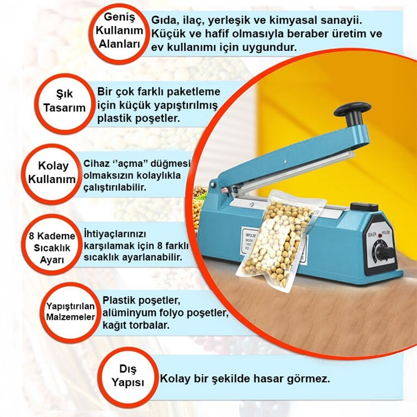 - Bu cihazın yapıştırma mantığı; poşete alt taraftan ısı vererek iki tarafını birbirine kaynatma üzerinedir.