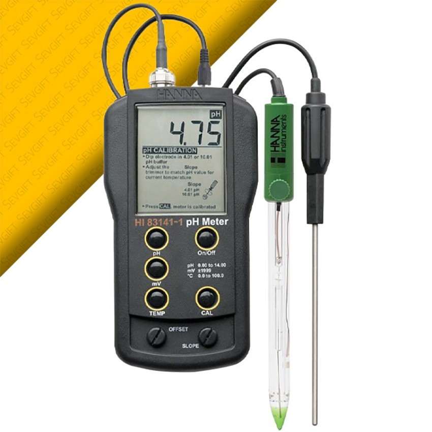 - Paket içeriği: HI 83141-1 prob okuyucu ana cihaz, HI 1043B boya pH elektrotu, HI7662 sıcaklık probu, HI70004 pH 4.01 tampon solüsyon poşeti, HI70007 pH 7.01 tampon solüsyon poşeti, HI700661 elektrot temizleme solüsyonu poşetleri (2 adet), kalibrasyon tornavidası, batarya ve talimatlarla birlikte verilir.