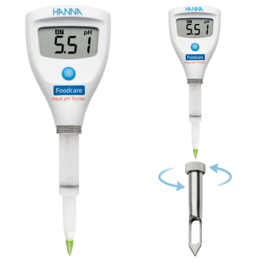 - Hanna HI981045, katı ve yarı katı gıdalar için geliştirilmiş özel elektrot yapısına sahiptir. Elektrot tasarımı sayesinde numuneye kolayca nüfuz eder ve et içerisinde doğrudan pH ölçümü yapılmasına imkan tanır.
