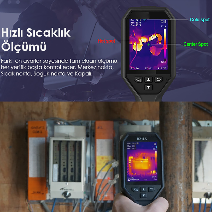 - Küçük sıcaklık farklılıklarını belirgin şekilde ortaya koyarak elektrik panoları, mekanik ekipmanlar ve bina uygulamalarında arızaların hızlı ve güvenilir şekilde tespit edilmesini sağlar.