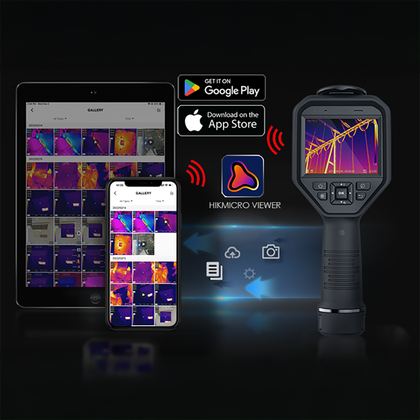 - Wi-Fi bağlantısı ile HIKMICRO Viewer mobil uygulaması üzerinden canlı görüntü izlenebilir ve görüntüler kablosuz olarak aktarılabilir. Ayrıca Wi-Fi veya USB (UVC) üzerinden bilgisayara bağlanarak canlı termal görüntü aktarımı yapılabilir.