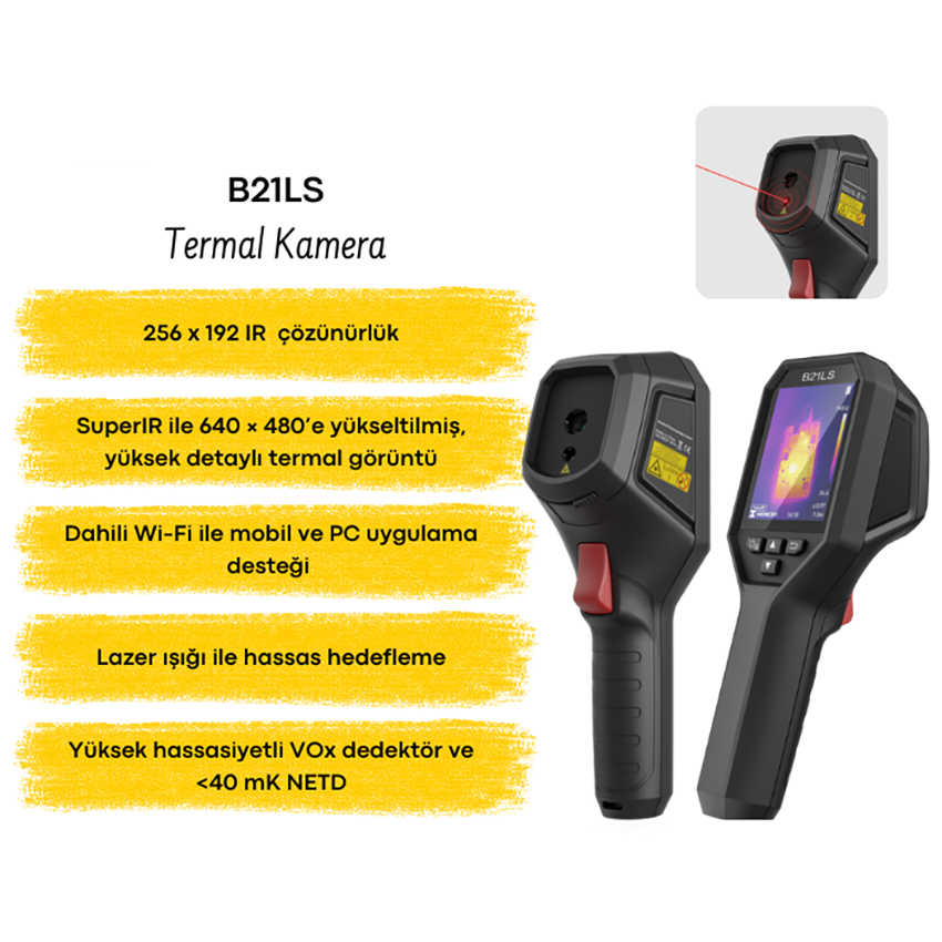 B21LS, günlük endüstriyel kullanım için yüksek performanslı, elde taşınabilir bir termal kamera çözümüdür. Yüksek çözünürlüklü ekranı ve
