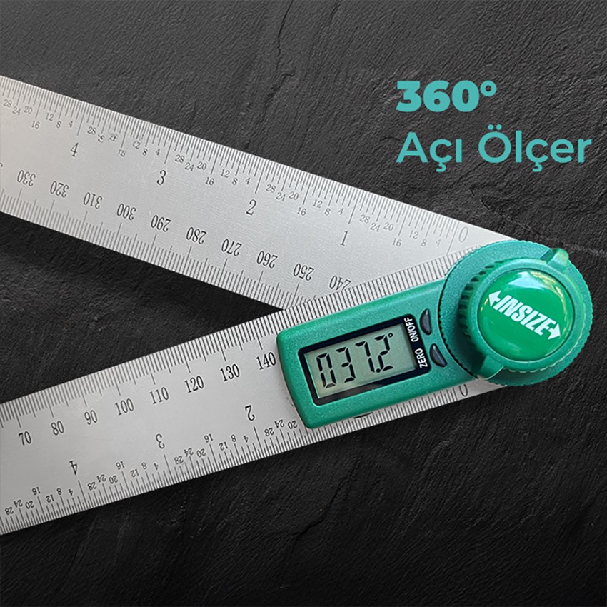 İnsize 2176-300 dijital açı ölçer cihazı; 360° ye kadar açı ölçümü yapabilen, 280 mm' e kadar ölçüm cetveline sahip iki koldan oluşan, dijital açı ölçüm cihazıdır.