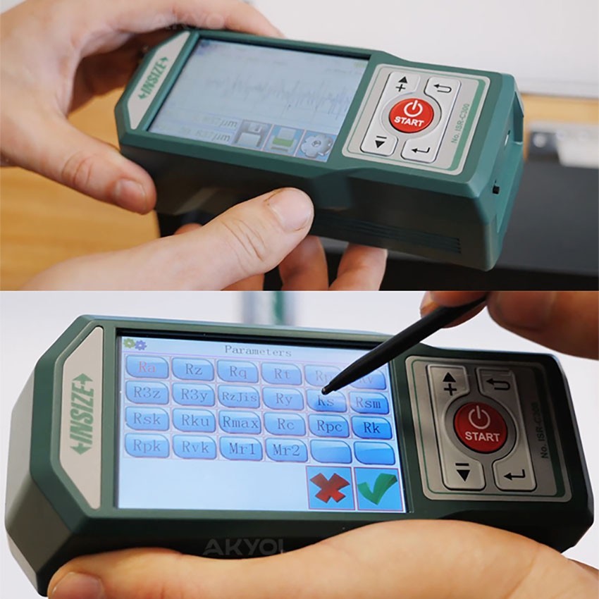 İnsize'ın ISR-C300 model güvenilir ve taşınabilir dokunmatik pürüzlülük test cihazı, 4mN'lik bir ölçüm kuvveti ve bir indüksiyon elmas probu dahil olan 0,001 µm çözünürlüğe sahip bir yüzey pürüzlülük ölçer cihazıdır.