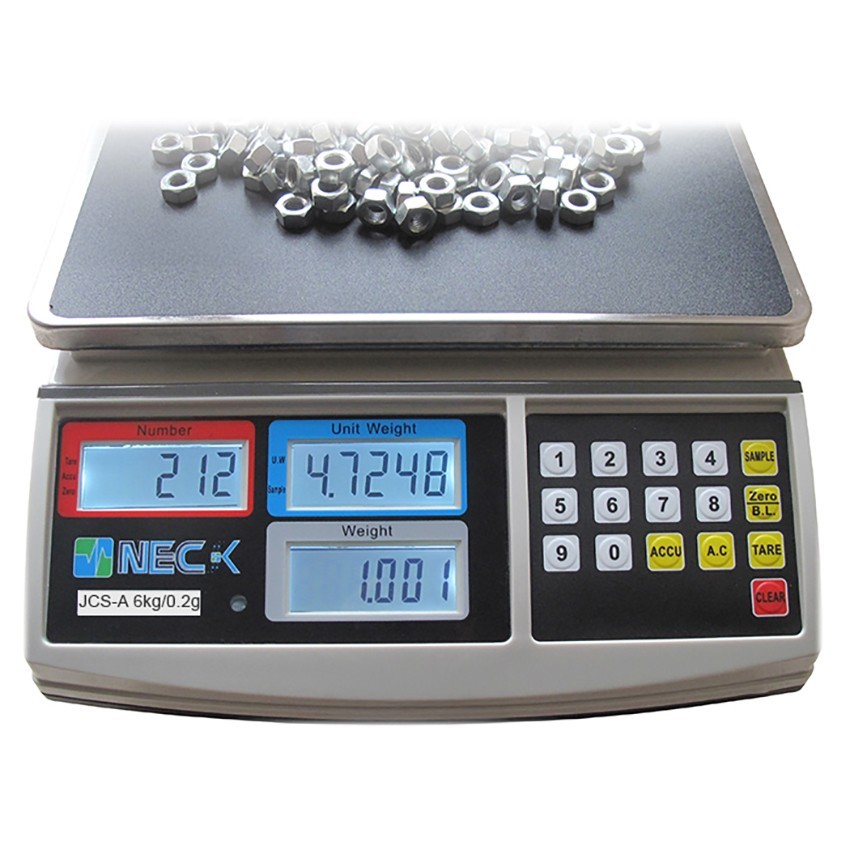 Neck JCS-A sayıcı terazi; 0.5 gram hassasiyetiyle 15 kilograma kadar toplam ağırlığa sahip numunelerin adedini belirlemede kullanılan dijital hassas bir sayıcı terazidir.