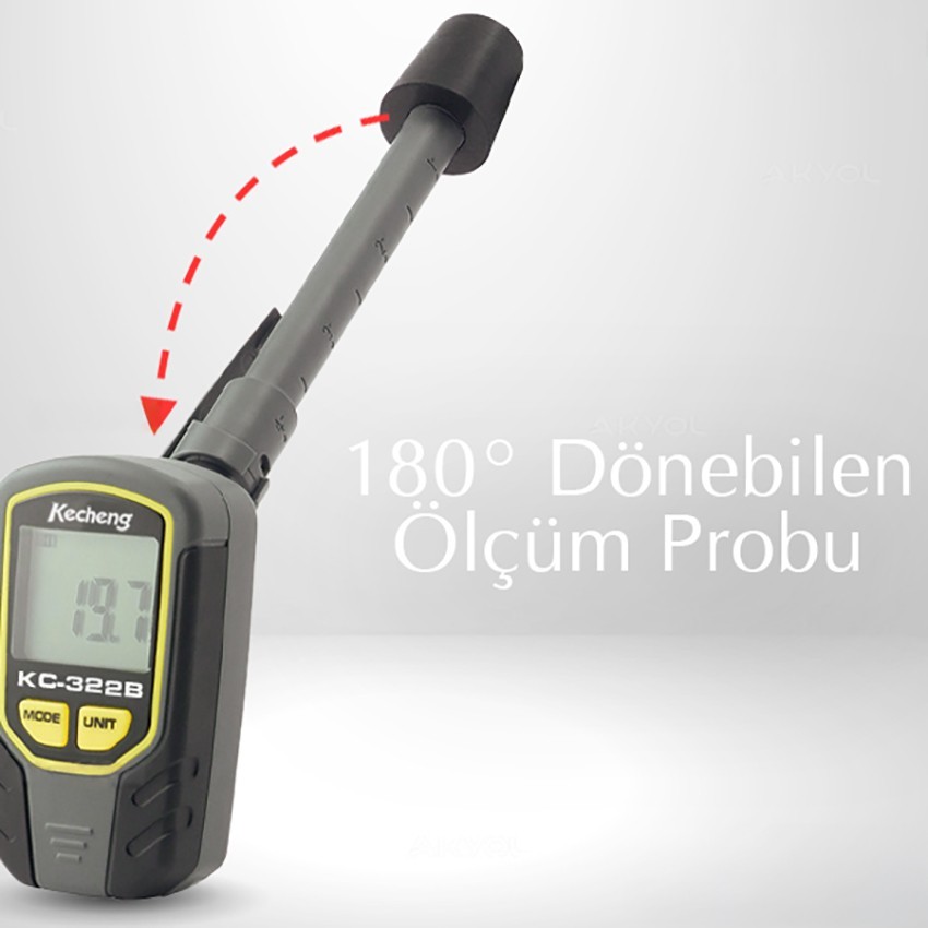 Kecheng KC-322B termo higrometre, ortam sıcaklığı, nem oranı, çiylenme noktası sıcaklığı, yaş termometre sıcaklığı, karışım oranı ve entalpi gibi çevresel parametreleri profesyonel olarak ölçen, dijital bir sıcaklık ve nem ölçüm cihazıdır. Kullanıcı dostu iki butonuyla iç mekanlarda, laboratuvarlarda, seralarda, depolarda ve endüstriyel alanlarda hassas ölçümler yapar.