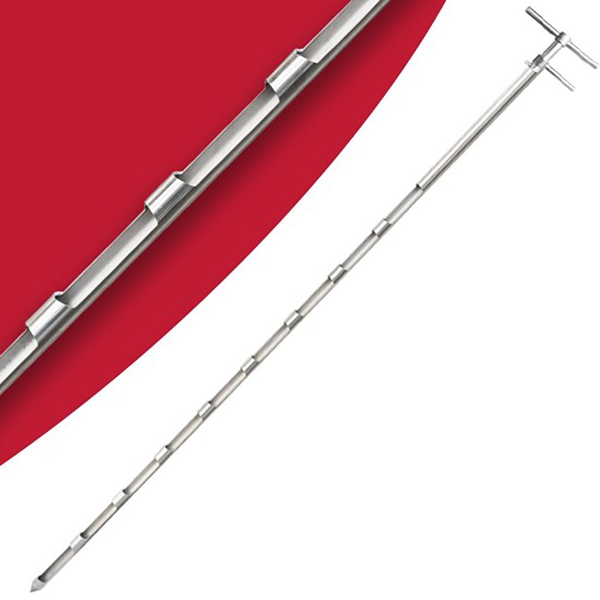 Üstten üstten boşaltmalı numune alma sondası; 7 gözlü yapıya sahip, uzun ve sivri uçlu yapısı ile yığınlardan numune almak için kullanılabilen dayanıklı sondadır.