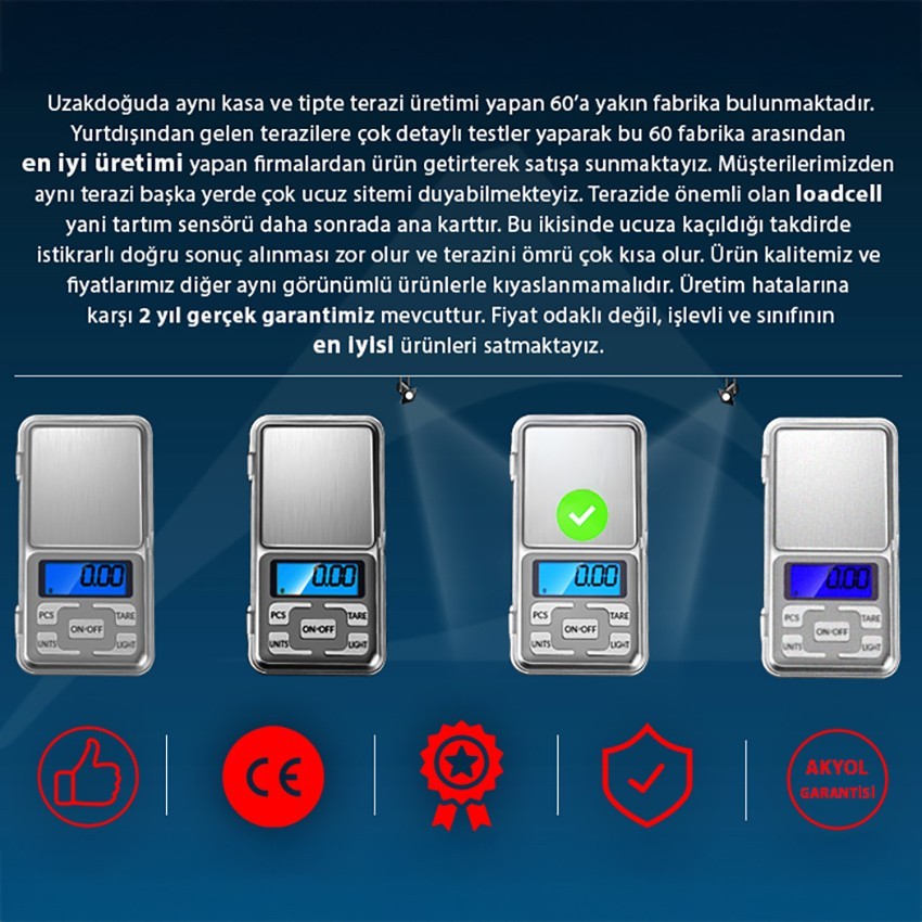 - Bu cep terazisi 2 adet AAA pil ile çalışmaktadır.