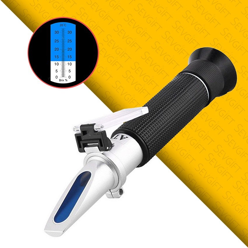 0-32 brix dürbün el tipi refraktometre cihazı; 0...32 Brix ölçüm aralığı bulunan hassas refraktometredir. Bu refraktometreler genellikle çok yoğun olmayan her çözeltinin yoğunluğunu ölçebilen en çok meyve suları, süt, gazlı içecekler vb. gibi ürünlerin briks değerini ölçmek için kullanılmaktadır.