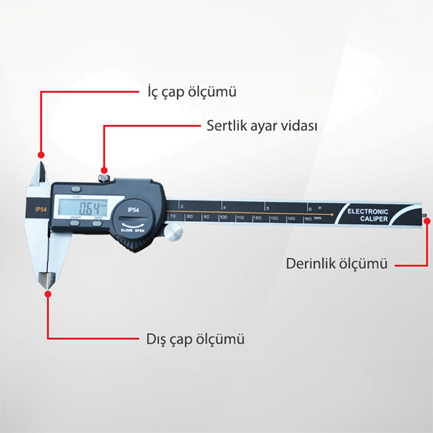 - 5110-150 dijital kumpas; 0-150mm arasında ölçüm yapabilmektedir.