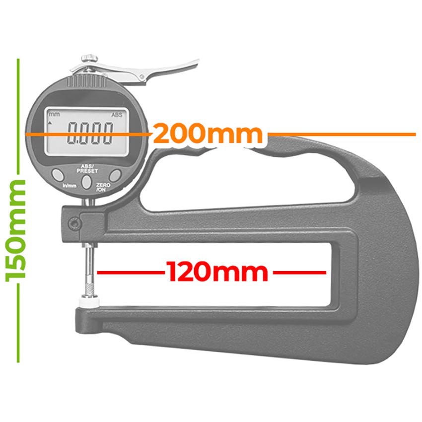 - Cihazın en büyük özelliği; 120 mm'e uzanan geniş ağız derinliği sayesinde nesnenin sadece uç kısmını değil orta bölümlerinin kalınlığını da ölçebilirsiniz.