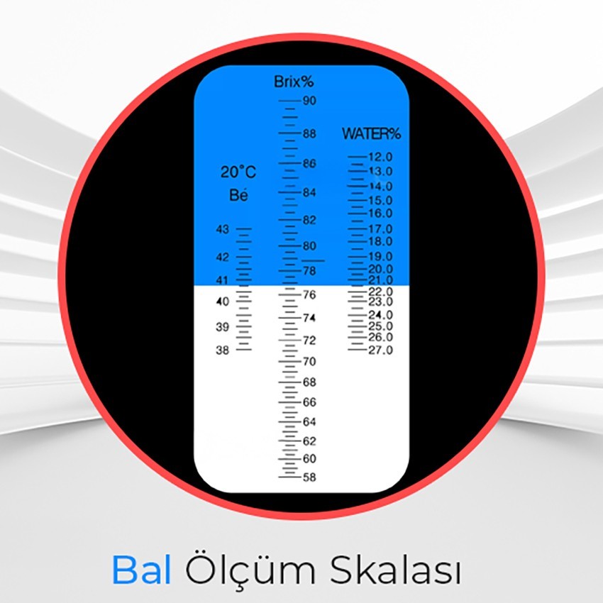 Bal refraktometresi; balın kalitesini kontrol etme amacı ile kullanılan, arıcıların çok ihtiyaç duyduğu hassas bir bal refraktometresidir. Bal refraktometresi; Bal üreticileri, reçel üreticileri, marmelat üreticileri için kolay bir şekilde ürün analiz olanağı sağlar. Doğru sonuçları vererek üretiminiz olumlu şekilde sonlandırır.