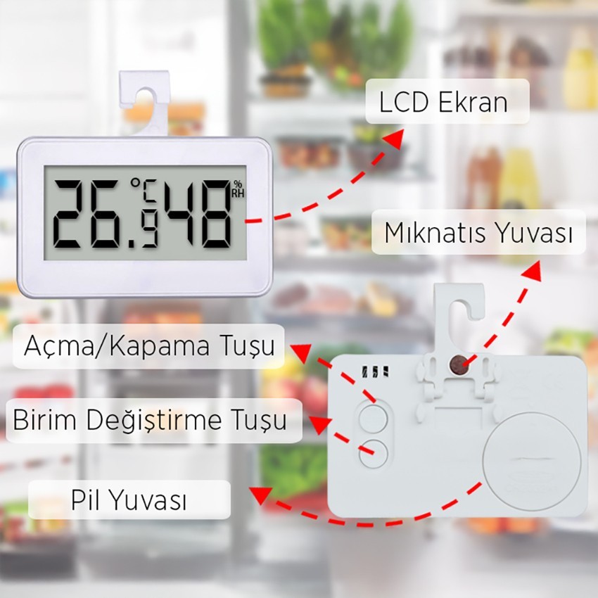 Küçük ebatlara sahip dijital mini buzdolabı termometresidir. Bu termometre buzdolabında kullanılabildiği gibi ortam sıcaklıklarını ölçmek içinde kullanılabilir.