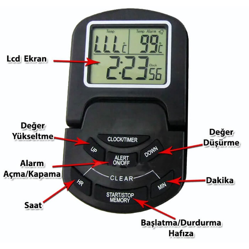 - Hem geri sayım hemde üst limit sıcaklık değeri için sesli alarm özelliği vardır.