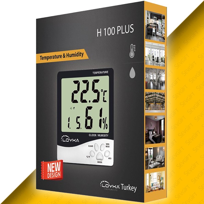 H100 Plus ısı ve nem ölçüm cihazı; herhangi kapalı bir ortamda bulunan ısı ve nem değerini ölçebilen, aynı zamanda LCD ekranında ay, yıl ve saati sürekli olarak ekranda gösterebilen, şık bir tasarıma sahip sıcaklık ve nem ölçüm cihazıdır.