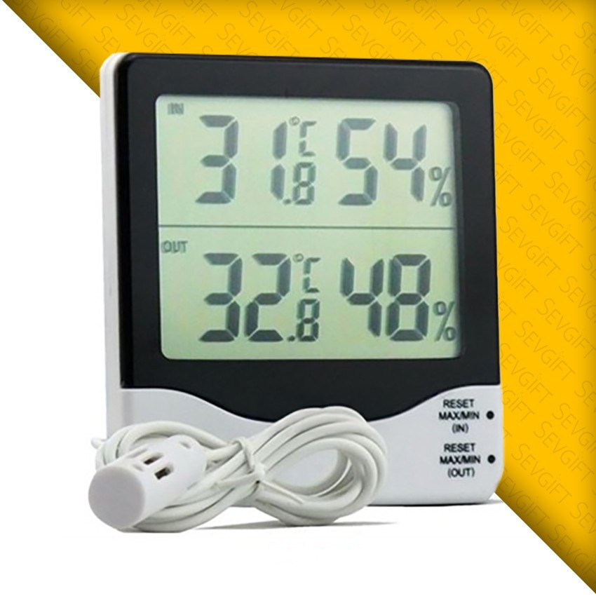 H300 İç ve Dış Ortam Sıcaklık Nem Ölçer; 1.5 metre uzunluğundaki kablosu vasıtasıyla iki farklı ortamın sıcaklık ve nem değerlerini tek ekrandan gösterebilen hassas bir sıcaklık ve nem ölçerdir.
