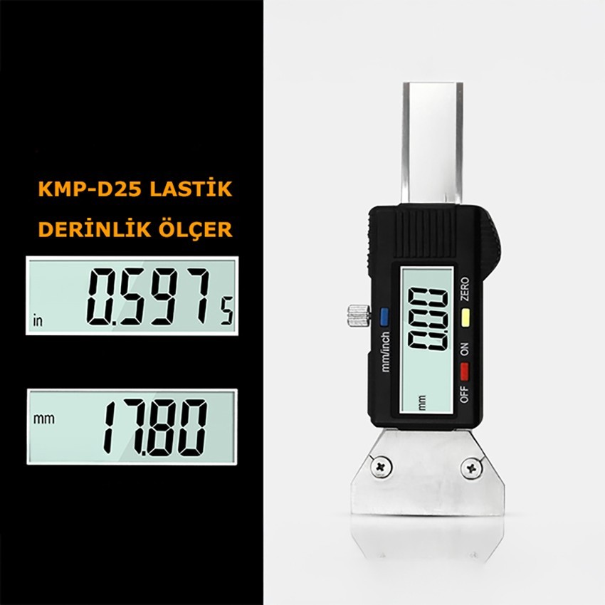 KMP D25 Lastik Derinlik Kumpası; 0-25mm arasında genellikle otomobil lastik derinliklerini ölçmek için kullanılan, dijital hassas derinlik kumpasıdır.