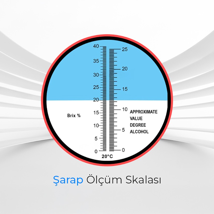 Şarap Refraktometresi, %0 ile %40 aralığında brix ölçümü ve %0 ile %25 aralığında potansiyel alkol derecesi ölçümü yapabilen bir cihazdır. Üzümlerin şeker içeriğini analiz ederek, üretilen şarabın alkol derecesini tahmin etme imkanı sunar. Bu cihaz, hem profesyonel şarap üreticileri hem de hobi olarak şarap yapanlar için mükemmel bir yardımcıdır.