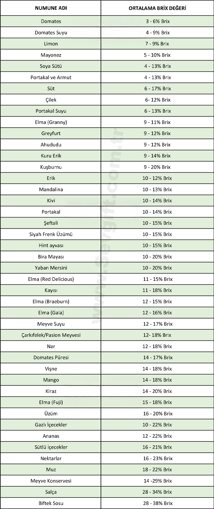 Not: Yukarıda yer alan numunelerin ölçüm sonuçları örnektir. Şekerlilik oranına göre numunelerde ölçüm sonuçları farklı çıkabilmektedir.