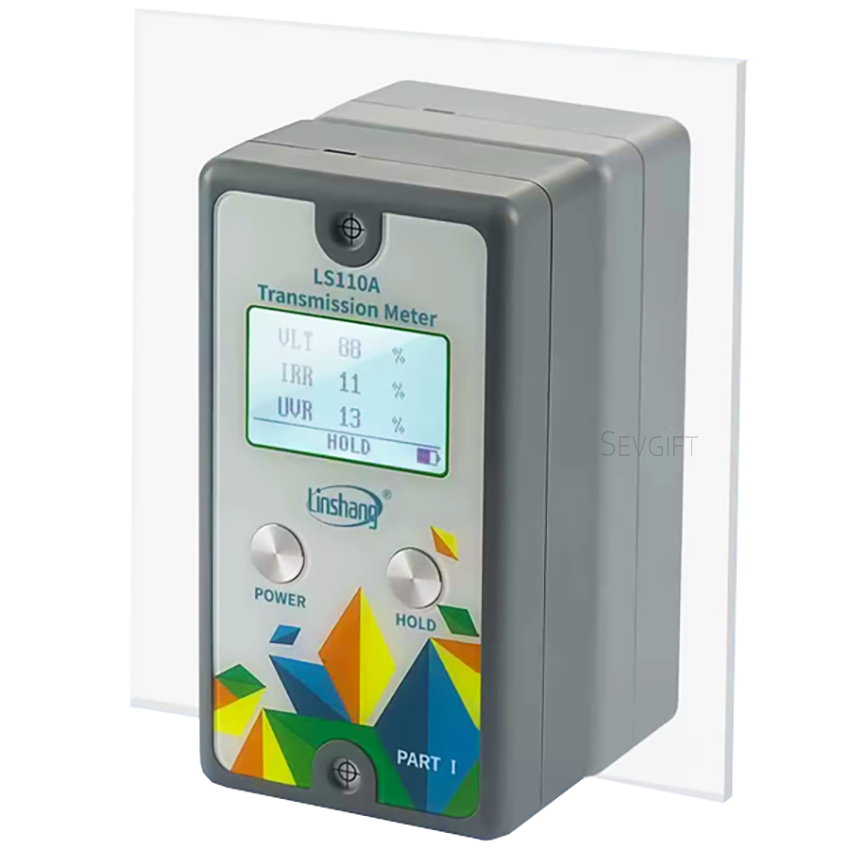 Linshang LS110A ölçüm cihazı; cam veya cam film yüzeylerinin ışık geçirgenliği ve ışık engelleme kabiliyetlerini aynı anda ölçüp gösteren bir ışık geçirgenlik test cihazıdır. Bu cihaz ile cam, pencere filmi ya da güneş koruyucu filmi gibi malzemelerin ne kadar ultraviyole ışını engellediğini (UVR), ne kadar kızılötesi ışını engellediğini (IRR) ve ne kadar görünür ışık geçirdiğini (VLT) tek seferde ölçebiliyorsunuz.