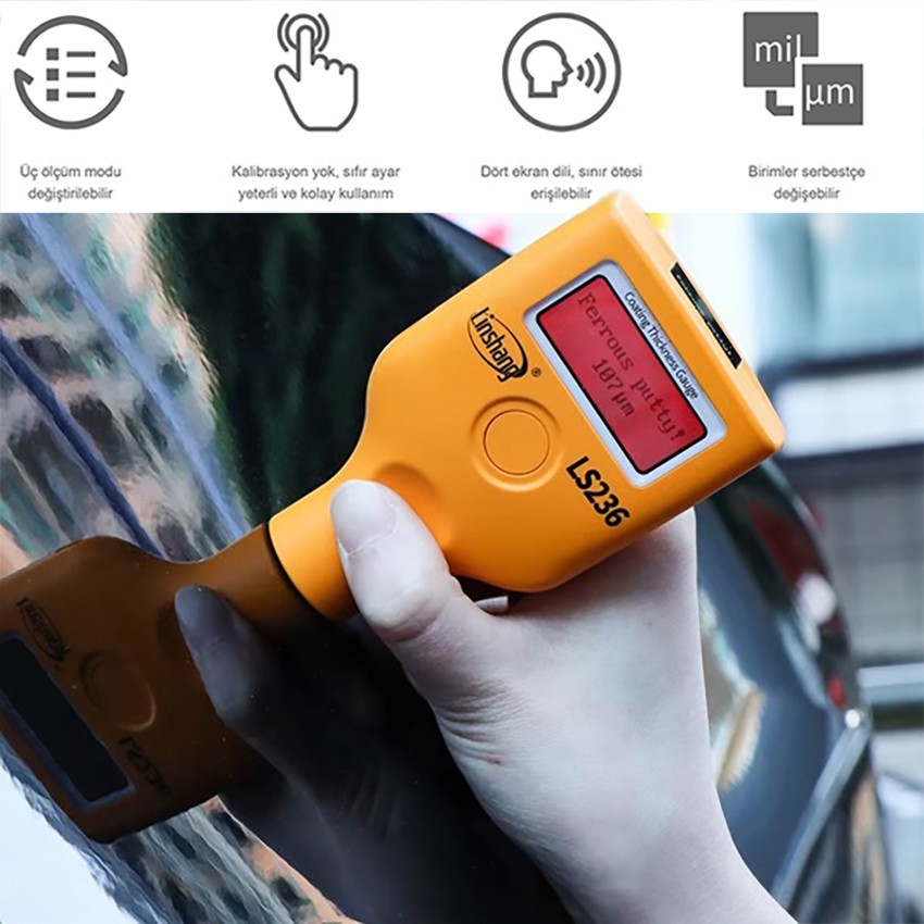 LS236 boya kalınlık ölçer, özellikle otomotiv sektöründe boya kalınlığı ölçümleri için profesyonel bir şekilde tercih edilen ve kullanılan üründür. Cihaz, demir, alüminyum gövde ve plastik alt tabakayı otomatik olarak tanıma gibi klasik bir özelliğe sahiptir. Bunun yanı sıra, LS236 cihazının akıllı tanımlama algoritması ile metalik macunla onarılmış hasarlı araçları tespit edebilmekte ve ayrıca galvanizli demir yüksek sınıf korozyon önleyici gövdeleri otomatik olarak tanıyabilmektedir.