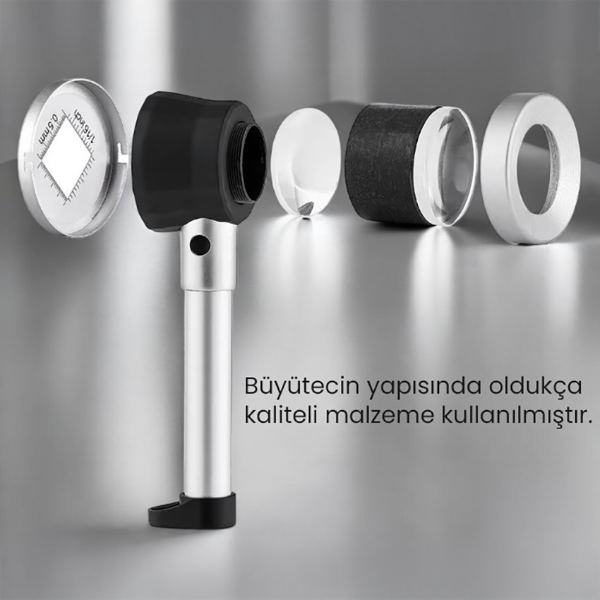 - 10x büyütme gücüne sahip bu el tipi büyüteç, detaylı inceleme gerektiren tüm işler için idealdir. Küçük nesneleri, yazıları ya da yüzey detaylarını net şekilde görmenizi sağlar.
