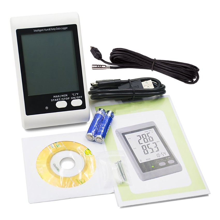 - 20E datalogger cihazını satın aldığınızda, cihazın yanında yazılım CD'si, USB ara kablosu, 3 metrelik harici sensörü, ingilizce kullanma kılavuzu ve pili tarafınıza gelecektir.
