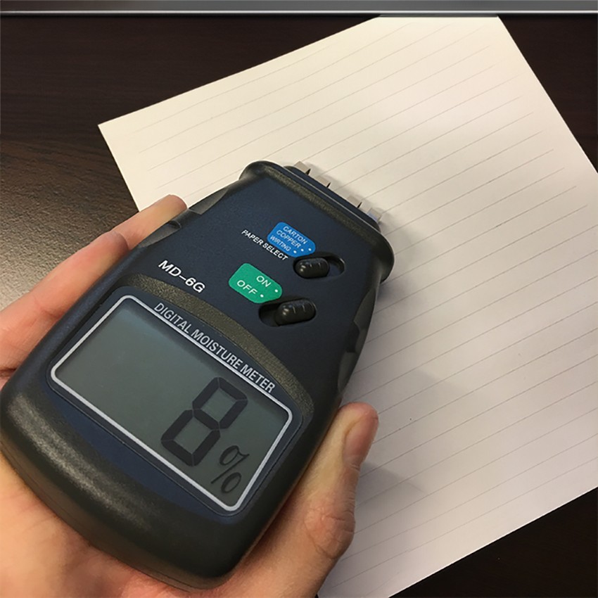 MD-6G dijital kağıt nem ölçer; hassas yaylı sensörü ile 3 çeşit kağıt tipinin (karton, kraft kağıt, yazı kağıdı) kolayca tespit edebileceğiniz kağıt nem ölçüm cihazıdır.