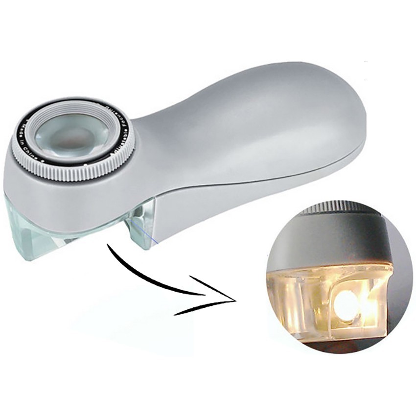 ışıklı el tipi büyüteç; 15x yakınlaştırma yapılabilme özelliğine sahip, 5x ve 10x merceğin birleşiminden oluşan bir büyüteç çeşididir. Büyütecin arka kısmında bulunan 6 adet led ışığı sayesinde karanlık ortamlarda rahat bir şekilde büyütme işlemi yapabilirsiniz. Ayrıca el tipi büyüteçte 2 adet UV led (Ultraviyole) bulunmaktadır.