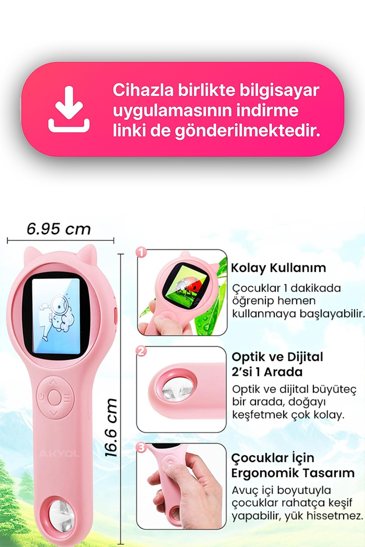 - Kompakt tasarımıyla dikkat çeken bu dijital mikroskop, gündelik gözlemlerden hobi amaçlı incelemelere kadar geniş bir kullanım alanı sunar. Tek elle kolayca kullanılabilmesi, cihazı her ortamda pratik bir çözüm haline getirir.