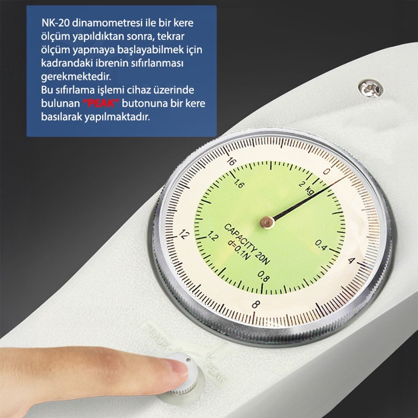 AMF-20 dijital itme çekme kuvveti ölçer; 20 newton yani 2 kilogram kapasiteli, elektronik aletler, inşaat donanımları, hafif sanayi tekstilleri, otomobil parçaları, ateşleme cihazları, yangınla mücadele ekipmanları, kalem yapımı gibi çeşitli alanlarda yaygın olarak kullanılan küçük, basit, çok işlevli ve yüksek hassasiyetli bir itme ve çekme test cihazıdır.